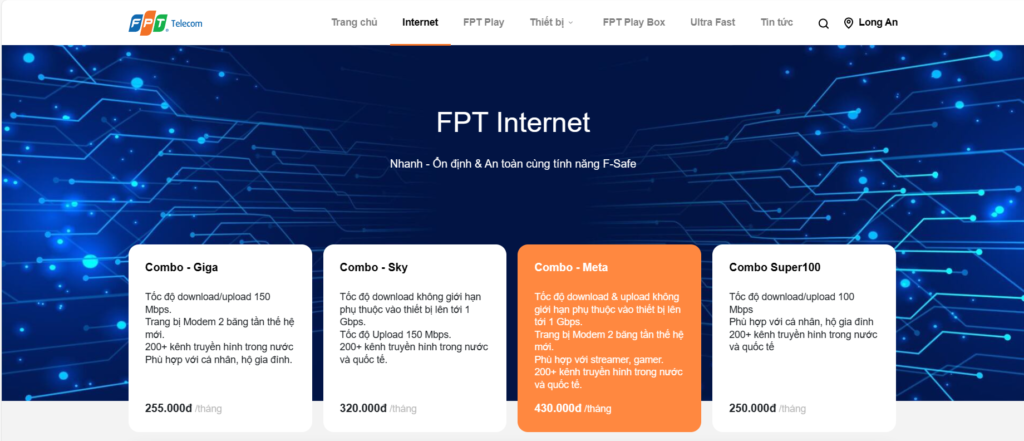 Truy cập trang web chính thức của FPT tại shop.fpt.vn để xem qua các gói dịch vụ internet. Dựa trên nhu cầu sử dụng của bạn hoặc doanh nghiệp bạn, từ cơ bản đến chuyên sâu, chọn gói cước phù hợp. FPT cung cấp đa dạng các tùy chọn với mức giá và tốc độ khác nhau, đáp ứng mọi nhu cầu sử dụng.