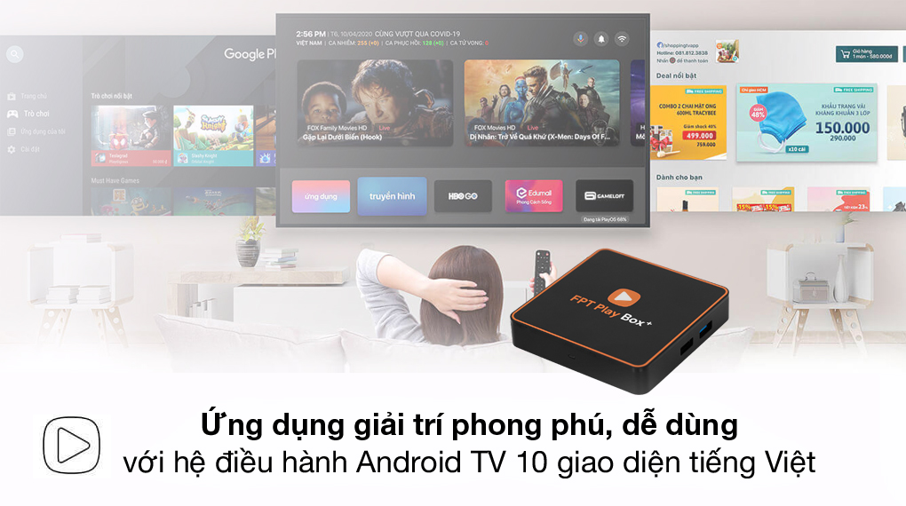 - Hơn 5000+ ứng dụng, trò chơi từ Google Play Store và FPT Play Store.