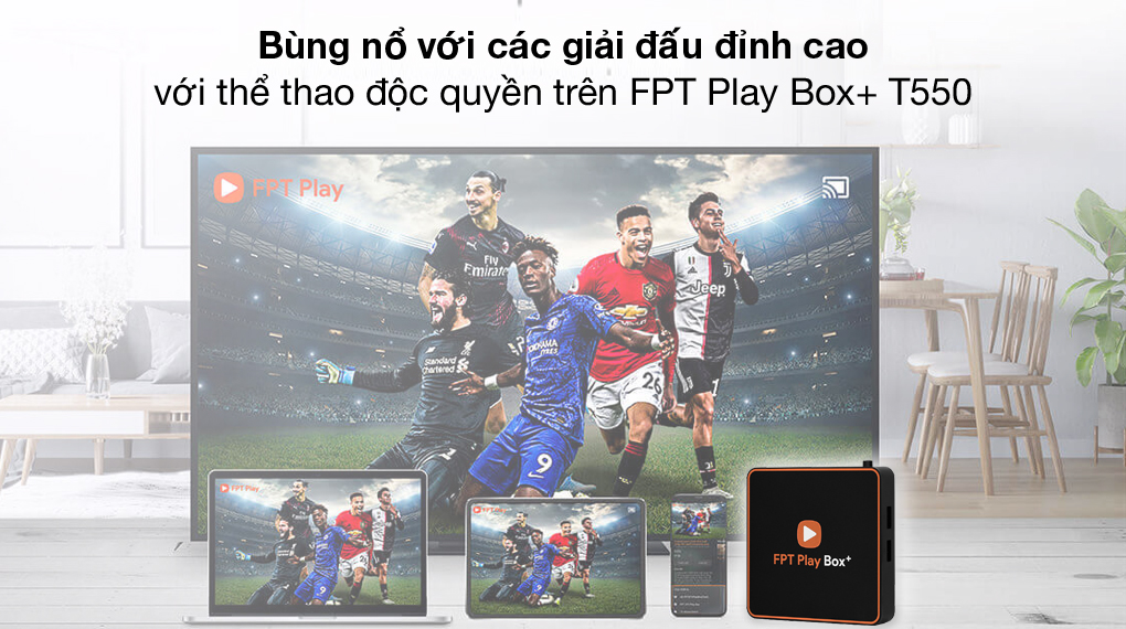 Với người yêu thể thao, sẽ thật tuyệt để thưởng thức thể thao độc quyền Ngoại hạng Anh trên K+, giải bóng rổ nhà nghề ABL, ATP World Tour… qua tài nguyên trên FPT Play Box+ T550.